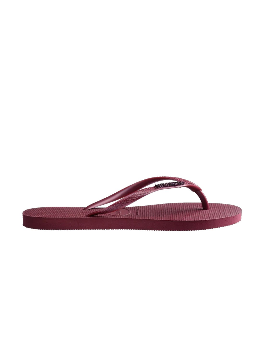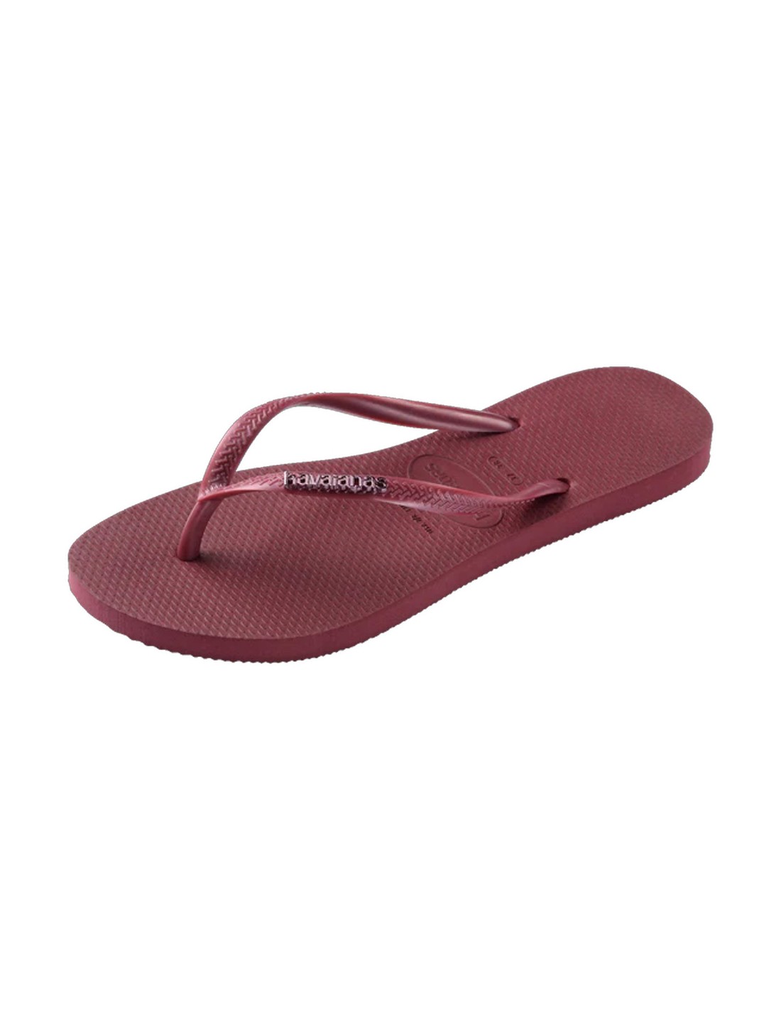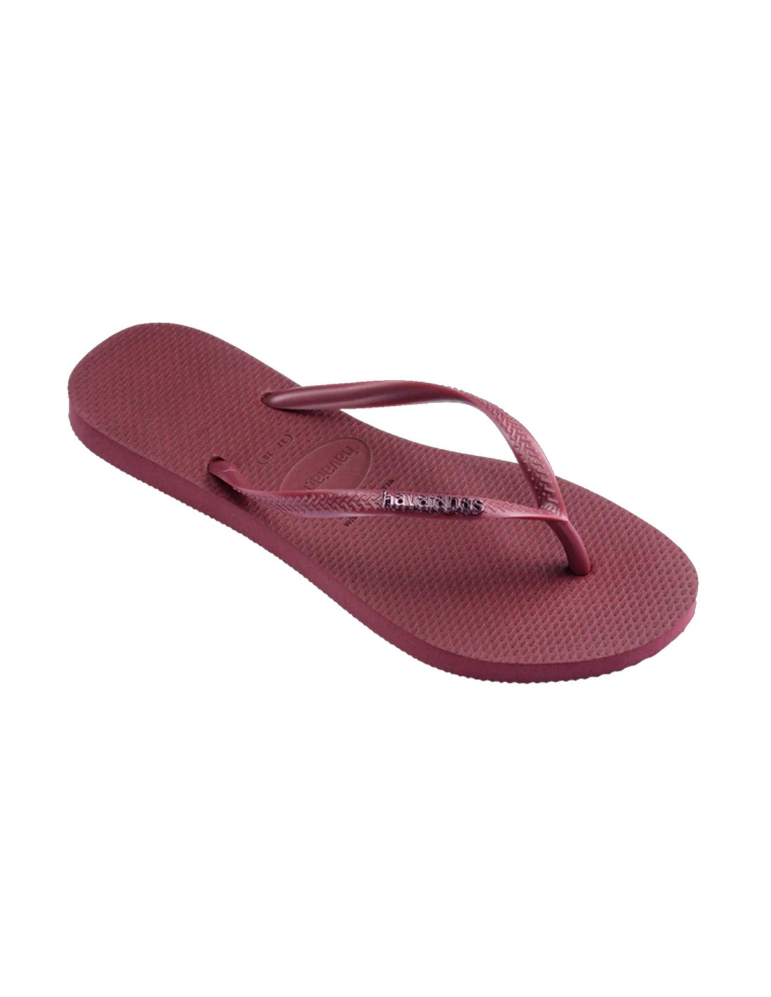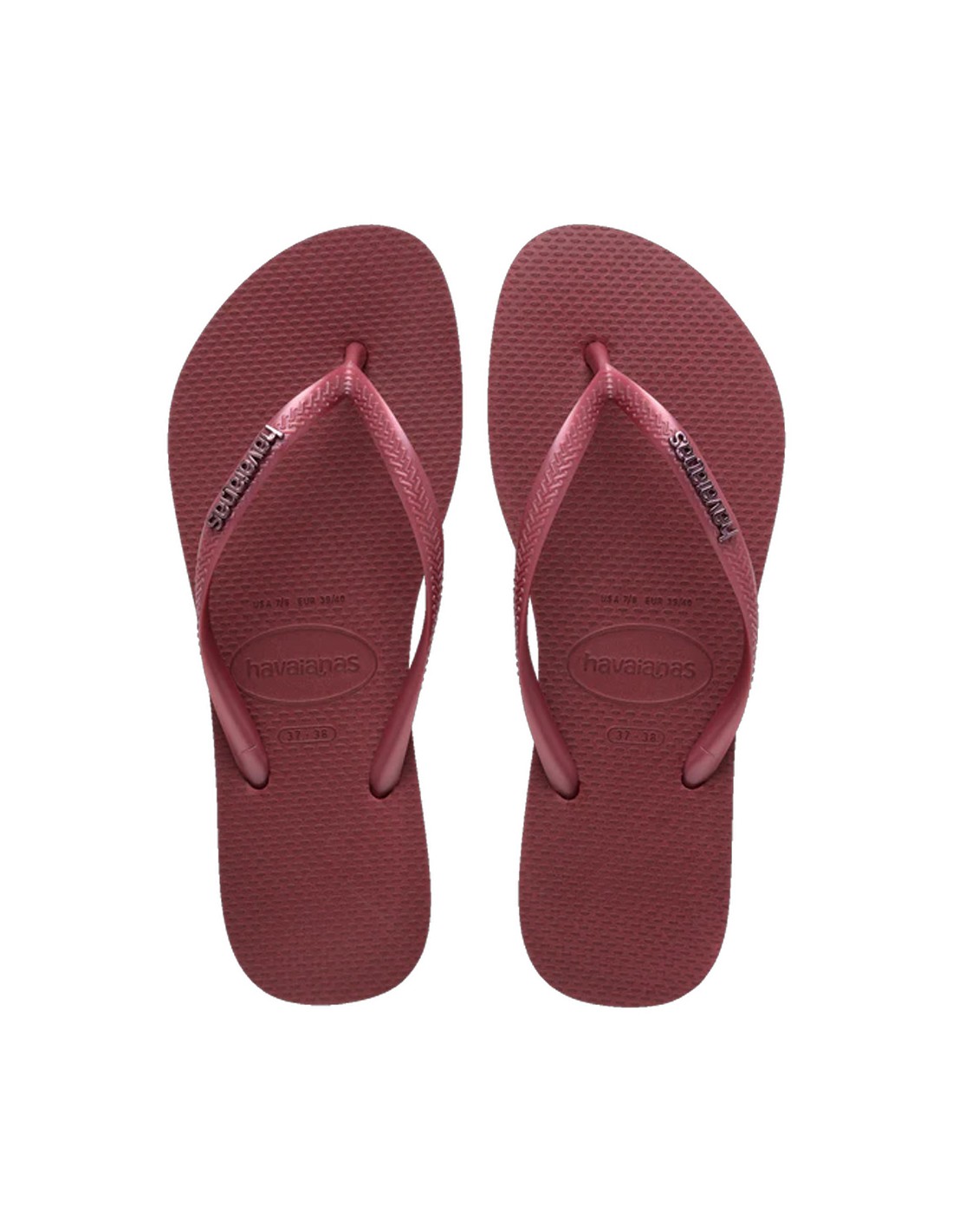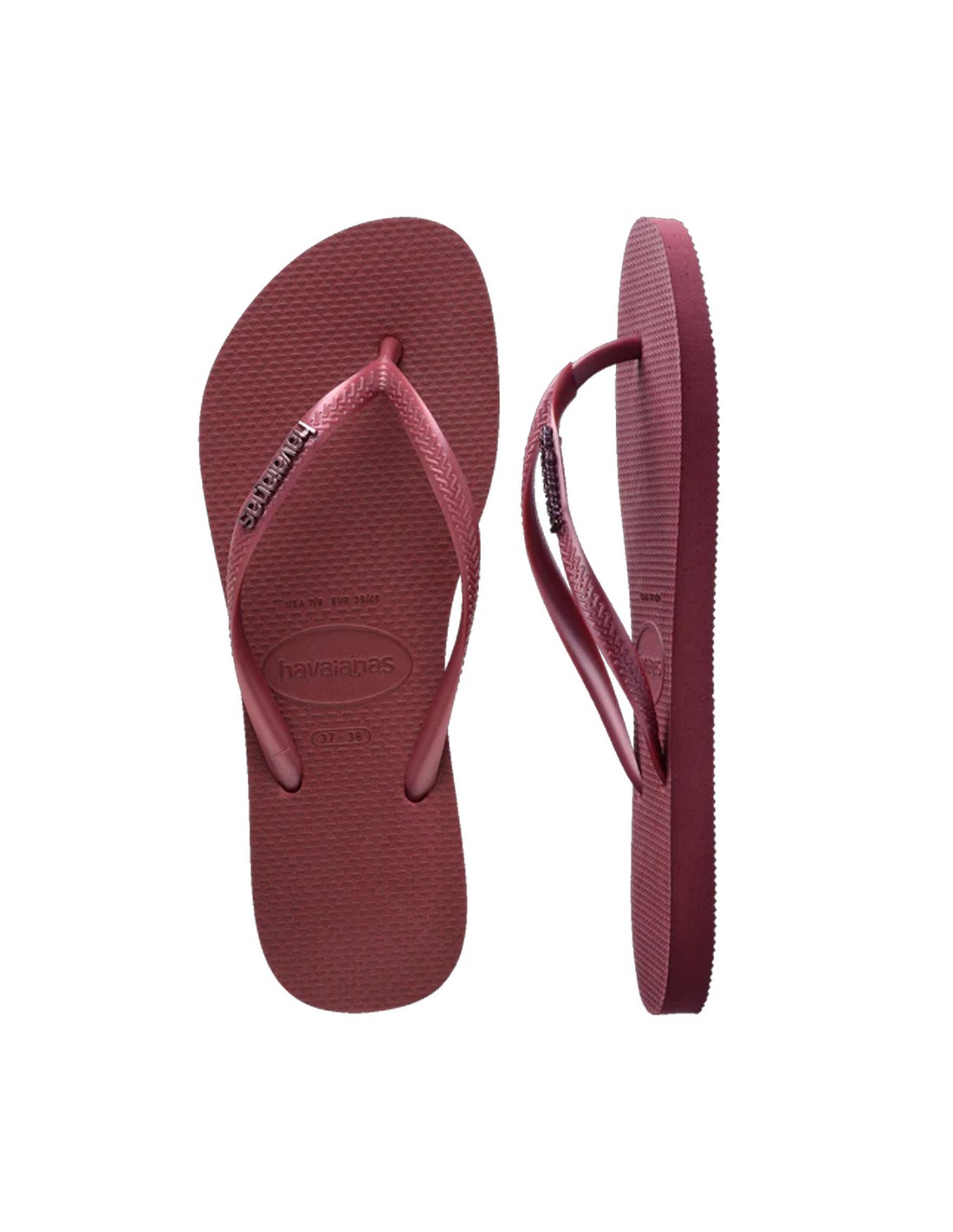 El logo metálico de Havaianas demuestra que esta Slim no es básica. Las tiras más delgadas, ya sea metalizadas o no, resaltan la marca de la chancla en una versión sofisticada.