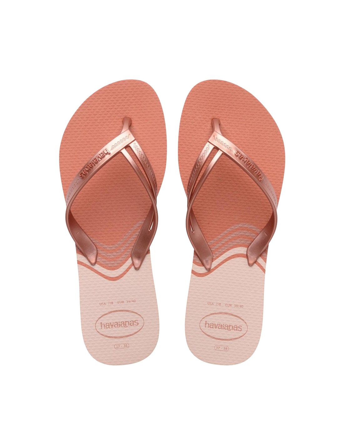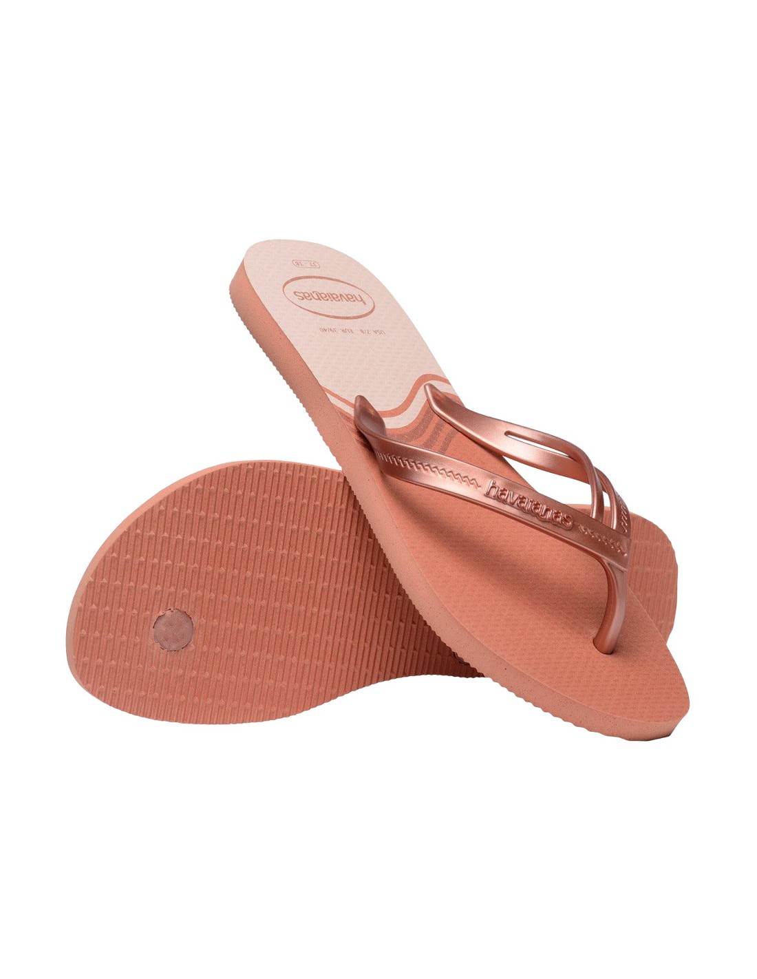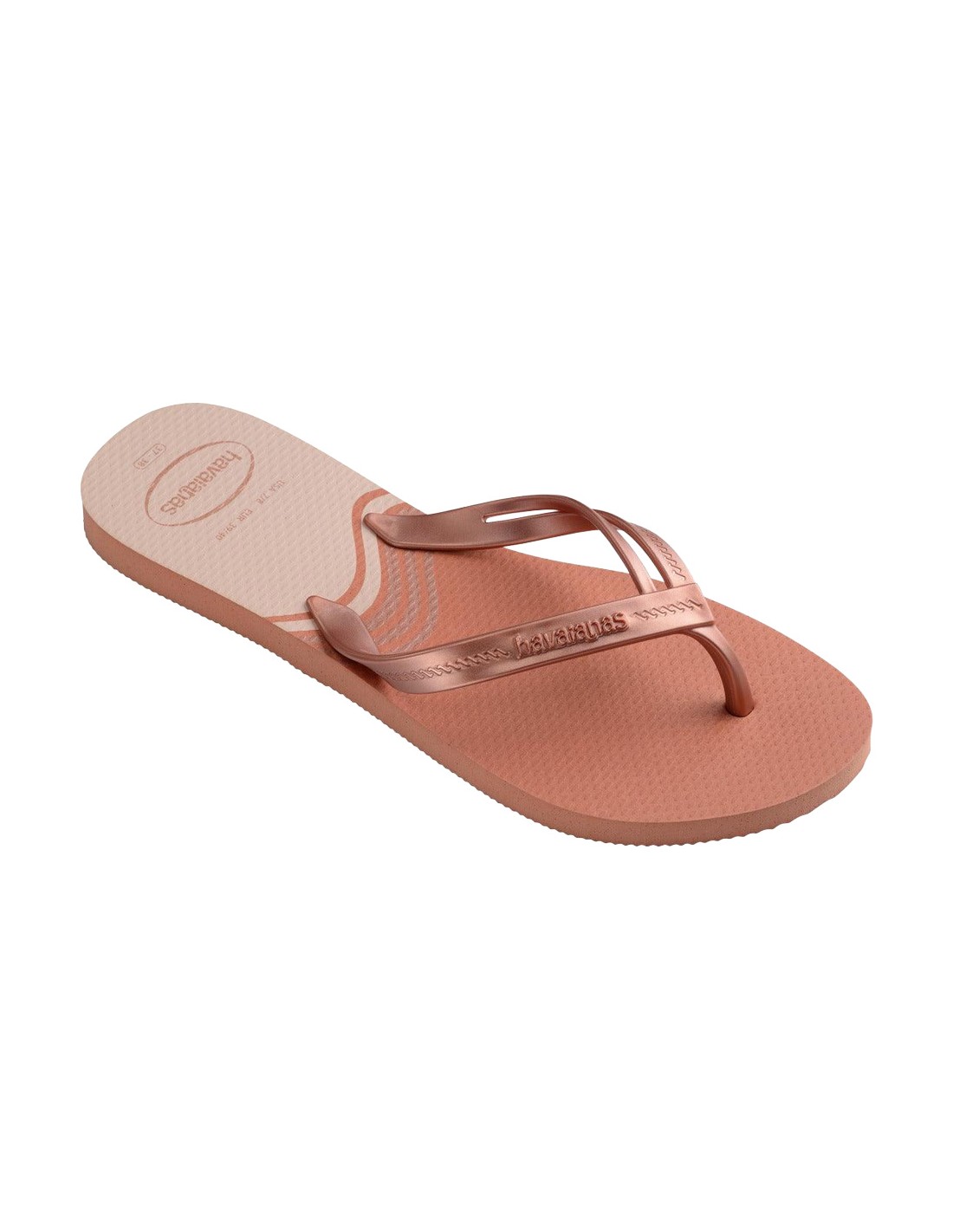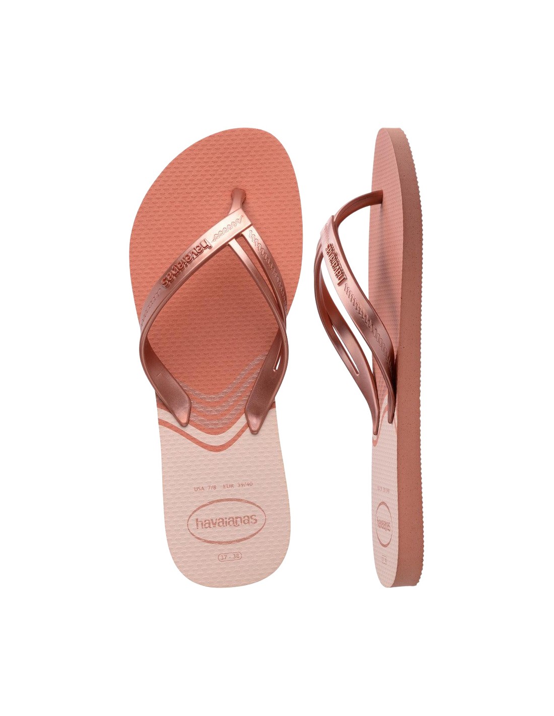 Las Elegance Print son unas chanclas sofisticadas. Presentan tiras lisas con un detalle recortado en un lateral y una suela con un elegante estampado de rayas en colores complementarios.