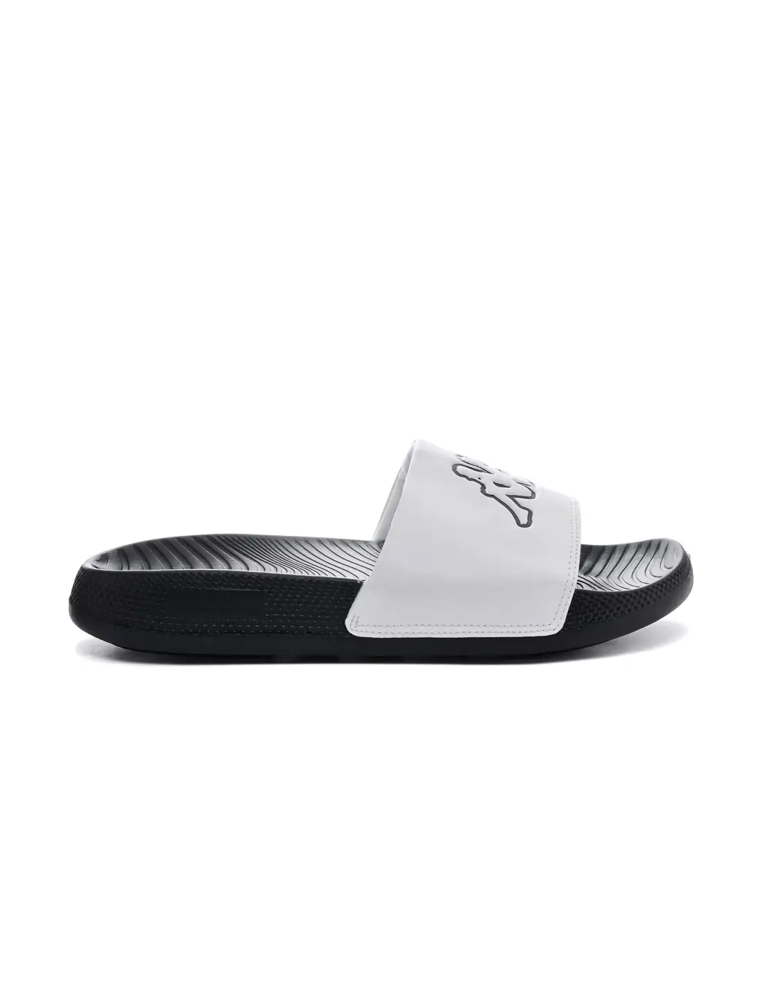 Chanclas unisex. Parte superior en material sintético, suela de masaje en goma. Logo Omini en la parte superior y lettering Kappa en la suela.