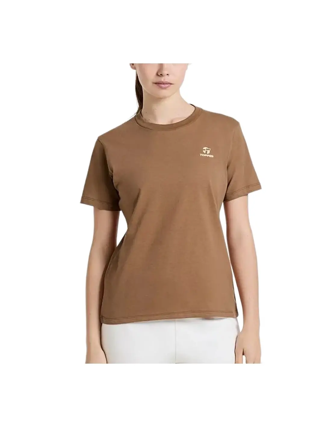Remera manga corta con escote redondo y cuello de rib. Isologo Retro en transfer.