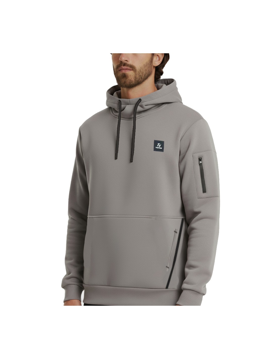 Bolsillo con cierre en la manga. Cordon chato con puntera plástica. Parche isologo Topper en frente. Tela: Doble frontura - Punto - 69% Algodón / 26% Poliéster / 5% Elastano