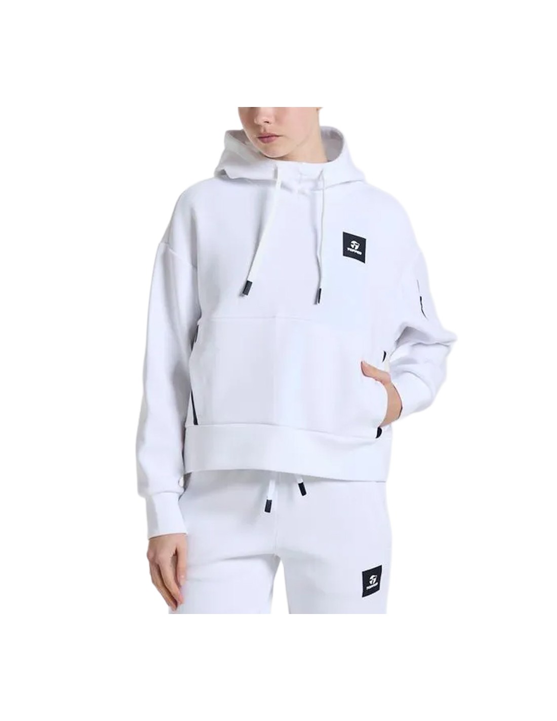 Bolsillo con cierre en la manga. Cordon chato con puntera plástica. Parche con Isologo Topper. Tela: Doble frontura - Punto - 69% Algodón / 26% Poliéster / 5% Elastano