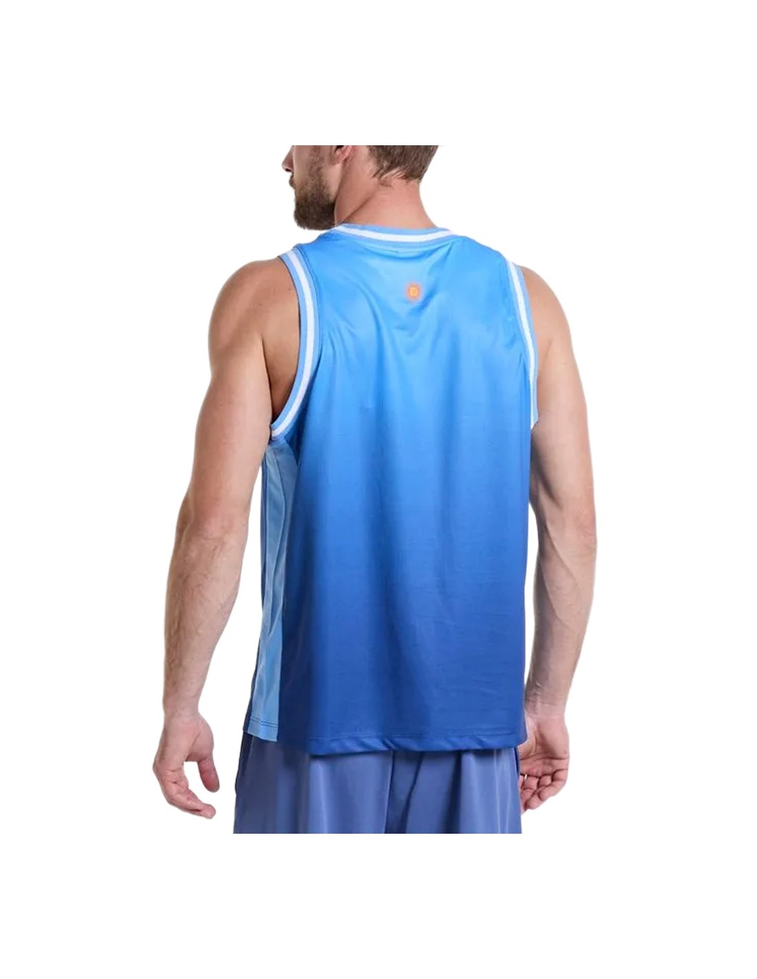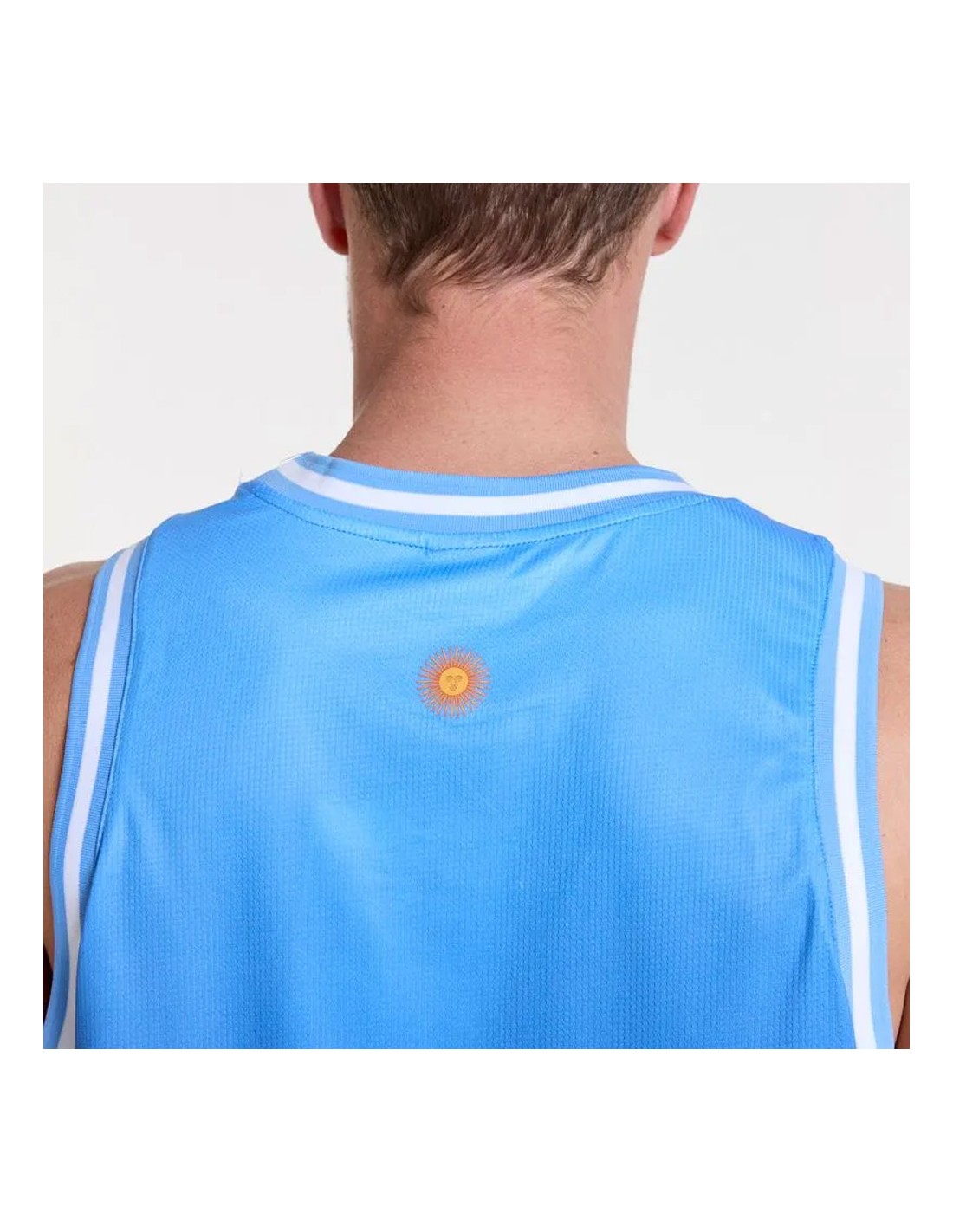 Musculosa de mesh con tiras en cuello y mangas personalizadas. Recorte horizontal recto en laterales de la prenda. Etiqueta bordada en cintura de la línea.