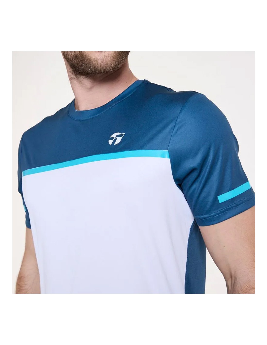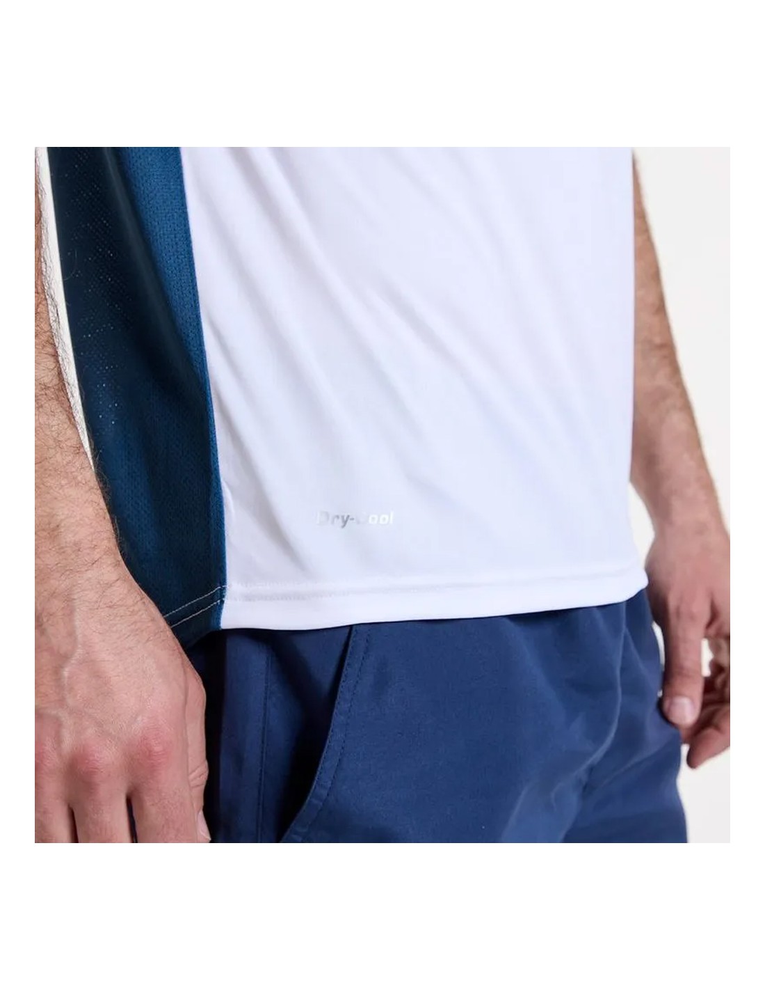Remera manga corta con escote redondo, espalda completa de mesh. Frente con recorte y estampa a contracolor en pecho y mangas. Tira de limpieza. Logo en transfer.