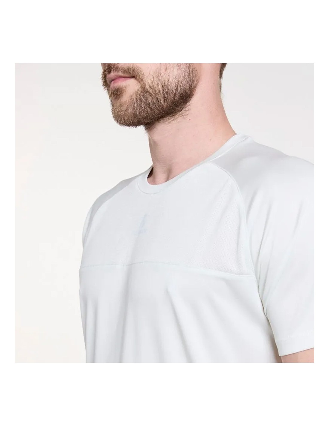 Remera manga corta con recorte de mesh en canesu delantero y espalda. Logo en transfer