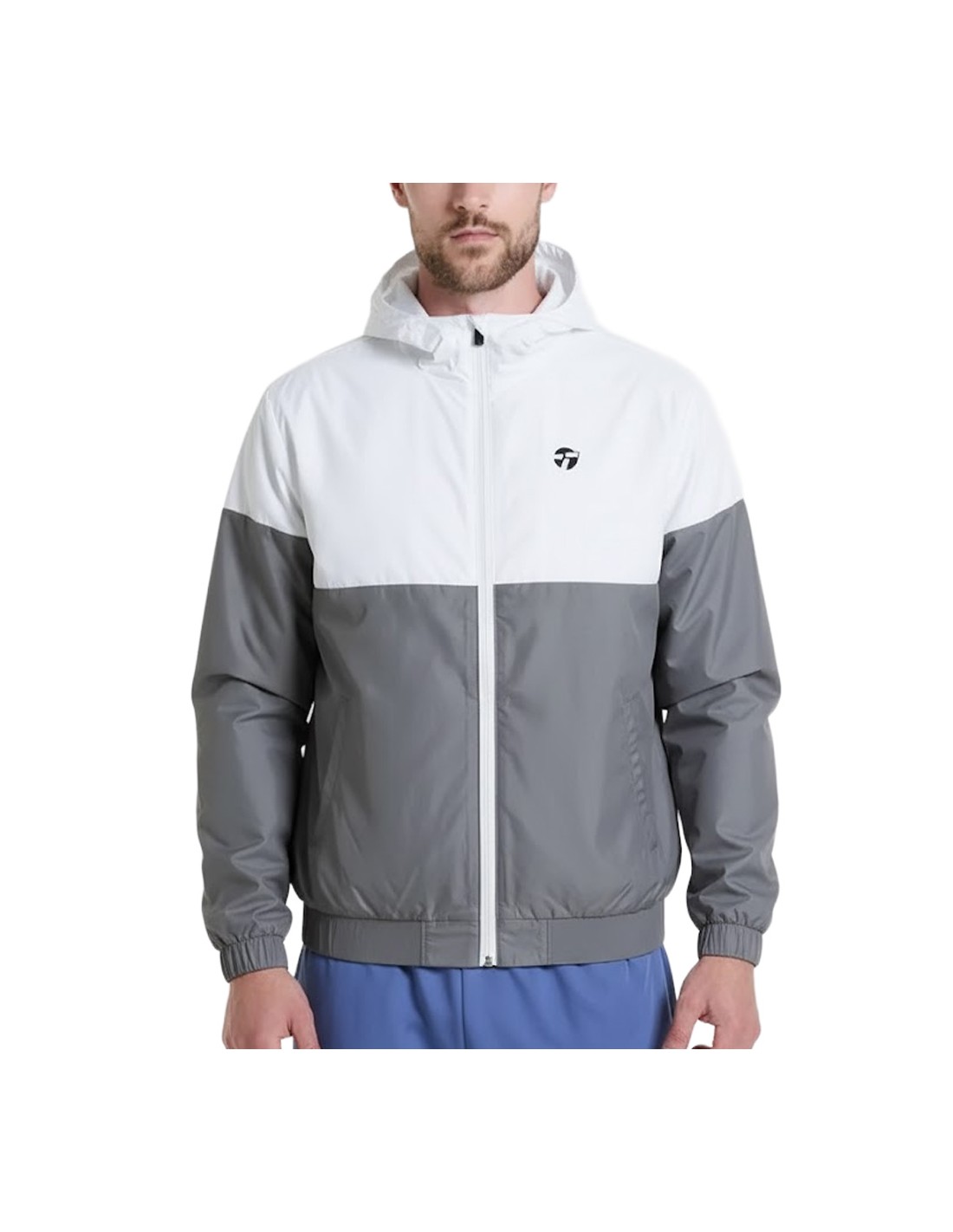 Rompevientos colorblock con capucha cuello alto. Puños y cintura de rib. Cierre invertido. Isotipo estampado en frente.