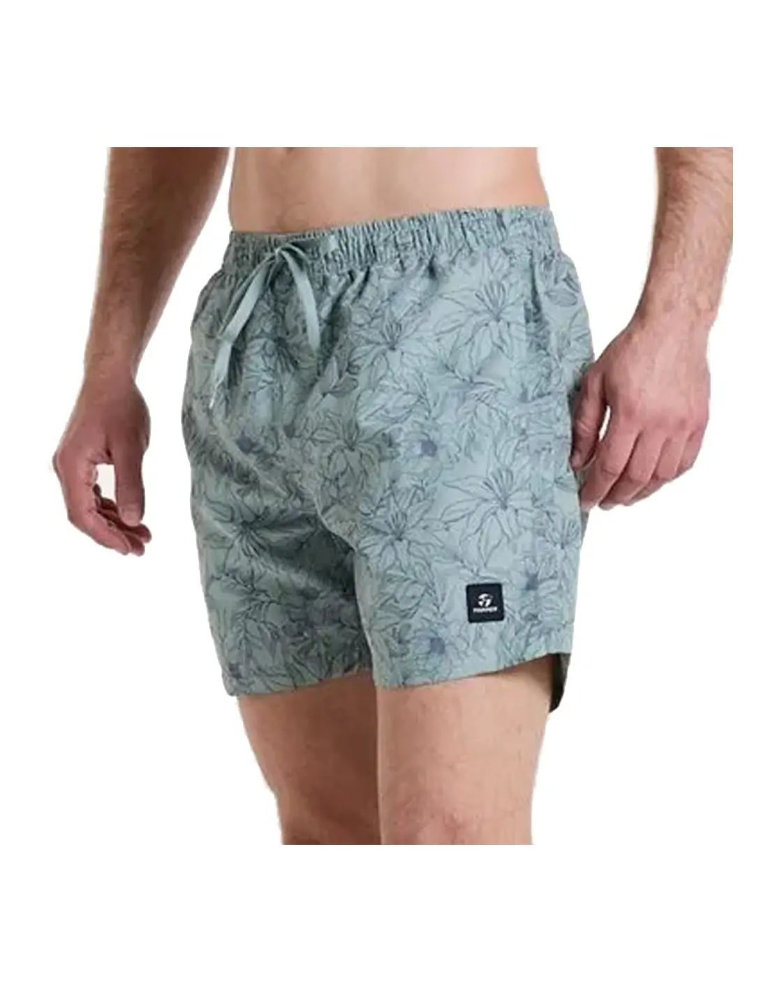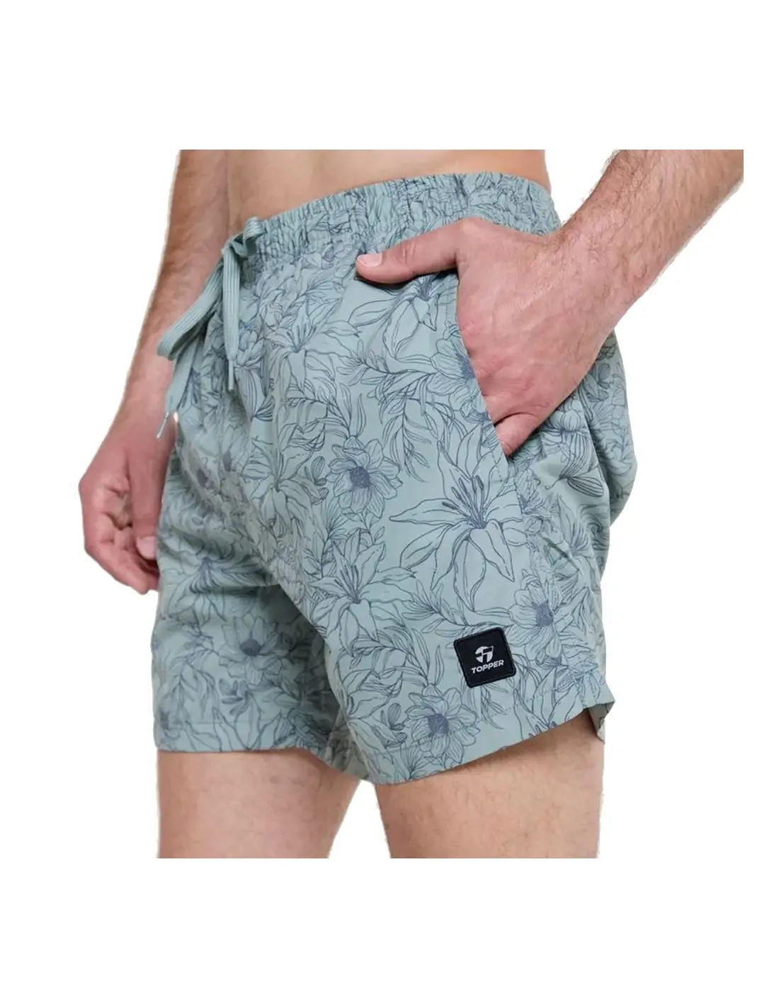 Short de baño de 5" de largo. Cintura elastizada, bolsillos laterales y suspensor interno. Cordón a contratono a la vista. Algunas variantes estampadas.