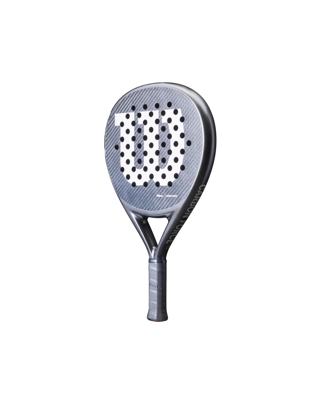 Basadas en la icónica franquicia Carbon Force de Wilson, las últimas paletas Carbon Force se basan en esta historia con las últimas tecnologías. La más ligera de la gama, la Carbon Force LT crea swings suaves y fáciles con resultados potentes. Con su amplio punto dulce y su suave espuma EVA, es una paleta indulgente que te ayudará a desarrollar la precisión en el juego defensivo. Y aunque está diseñada para el control, ofrece mucha velocidad en las voleas y los smashes. La cara de fibra de carbono proporciona una potencia impresionante e incorpora un acabado texturizado para dar más efecto la bola.